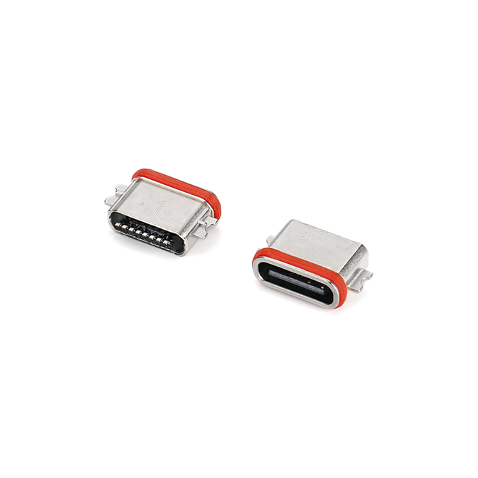 TYPE C 6PIN 防水 沉板1.6 母座有钢片